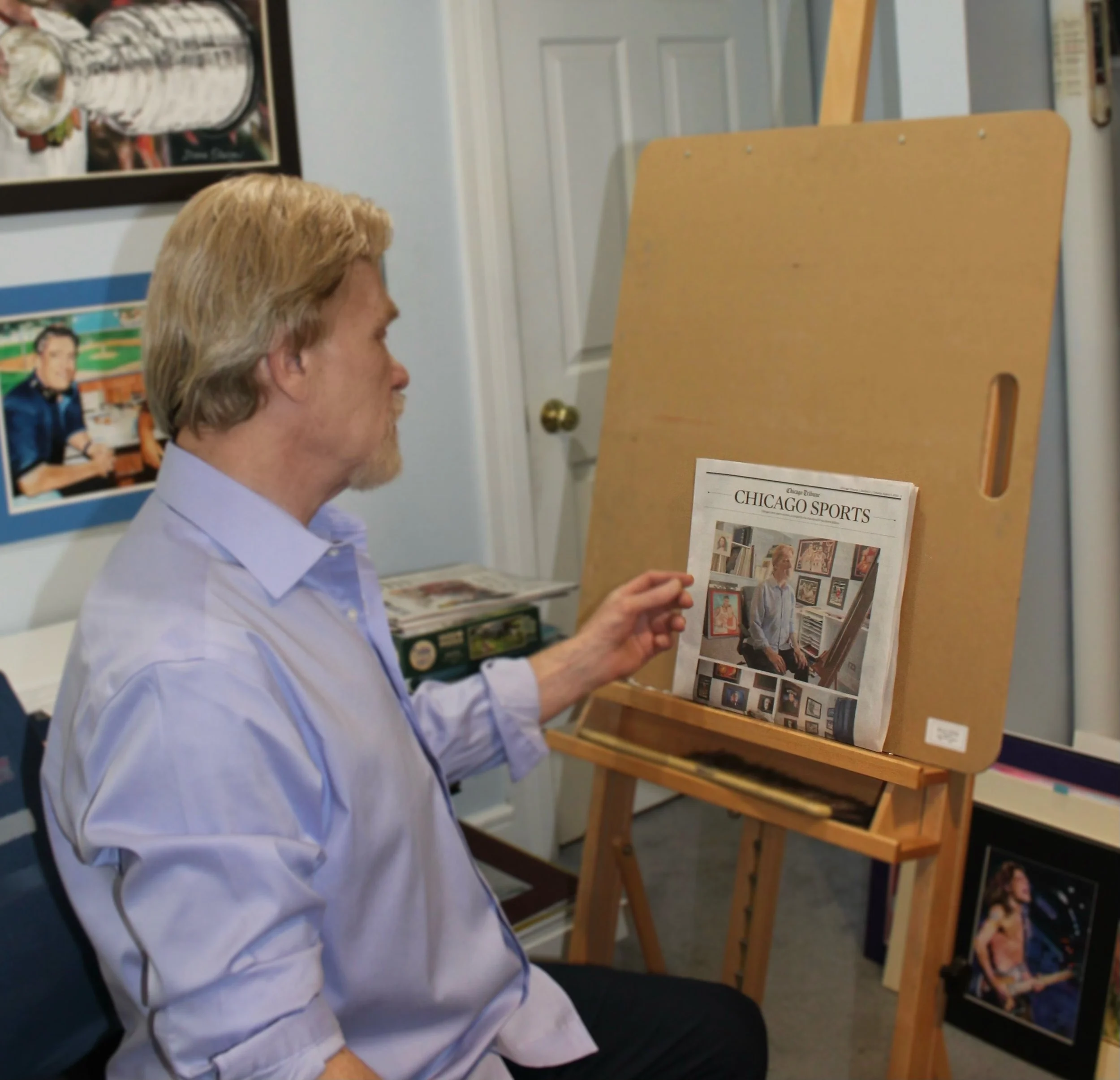 We secured Dave an invitation to appear on WGN-TV’s Morning News, where he shared his story as a Chicago sports artist and showcased his portraits live on air.
